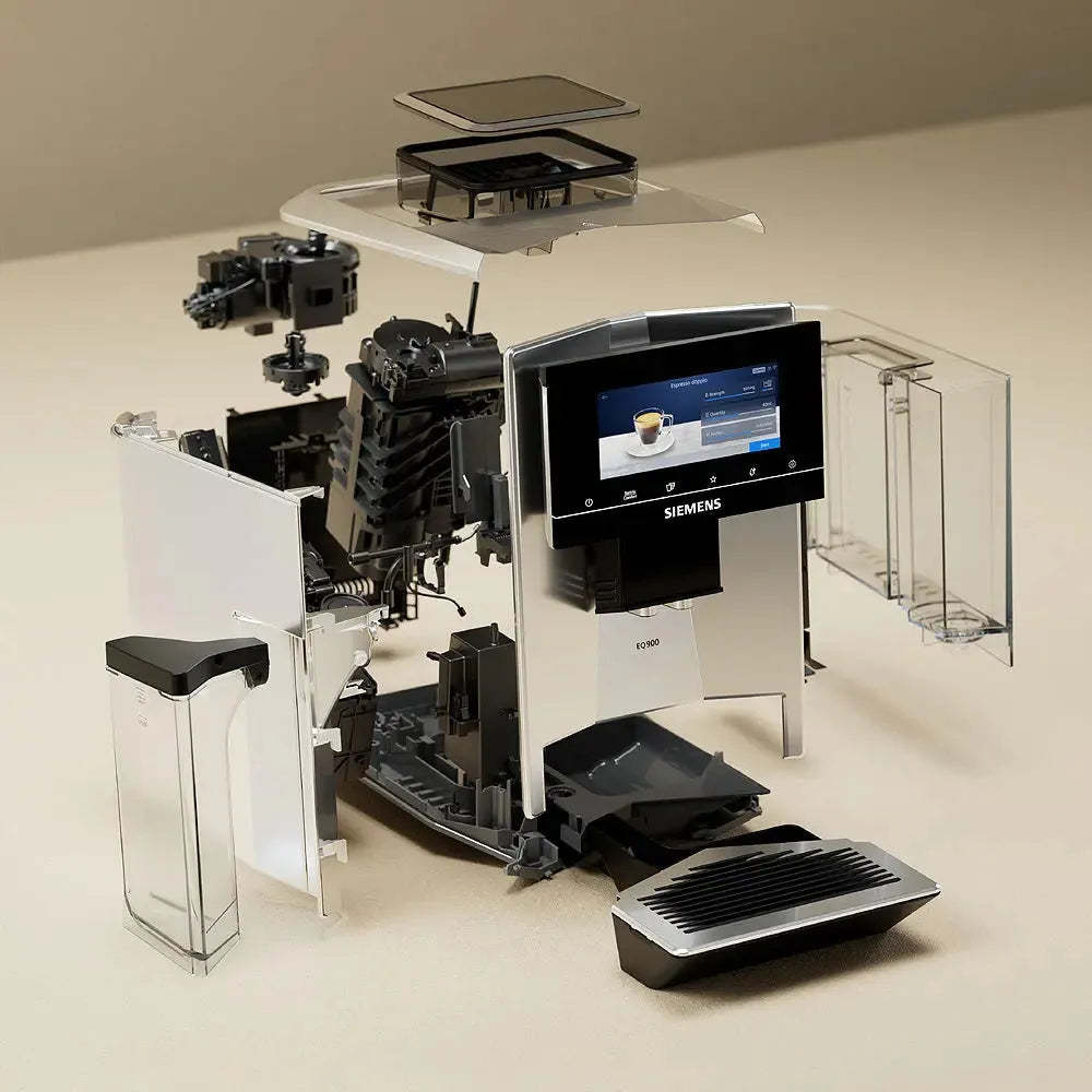 Dynamisch elegantes Design: Siemens setzt neue Maßstäbe in Design und Funktionalität. Die Kaffeevollautomaten bestechen durch ihre klare Designsprache, veredelte Materialien und ein attraktives Erscheinungsbild. Ihr dynamisches, nahtloses 360°-Design fügt sich perfekt in jede Küchenumgebung ein.
